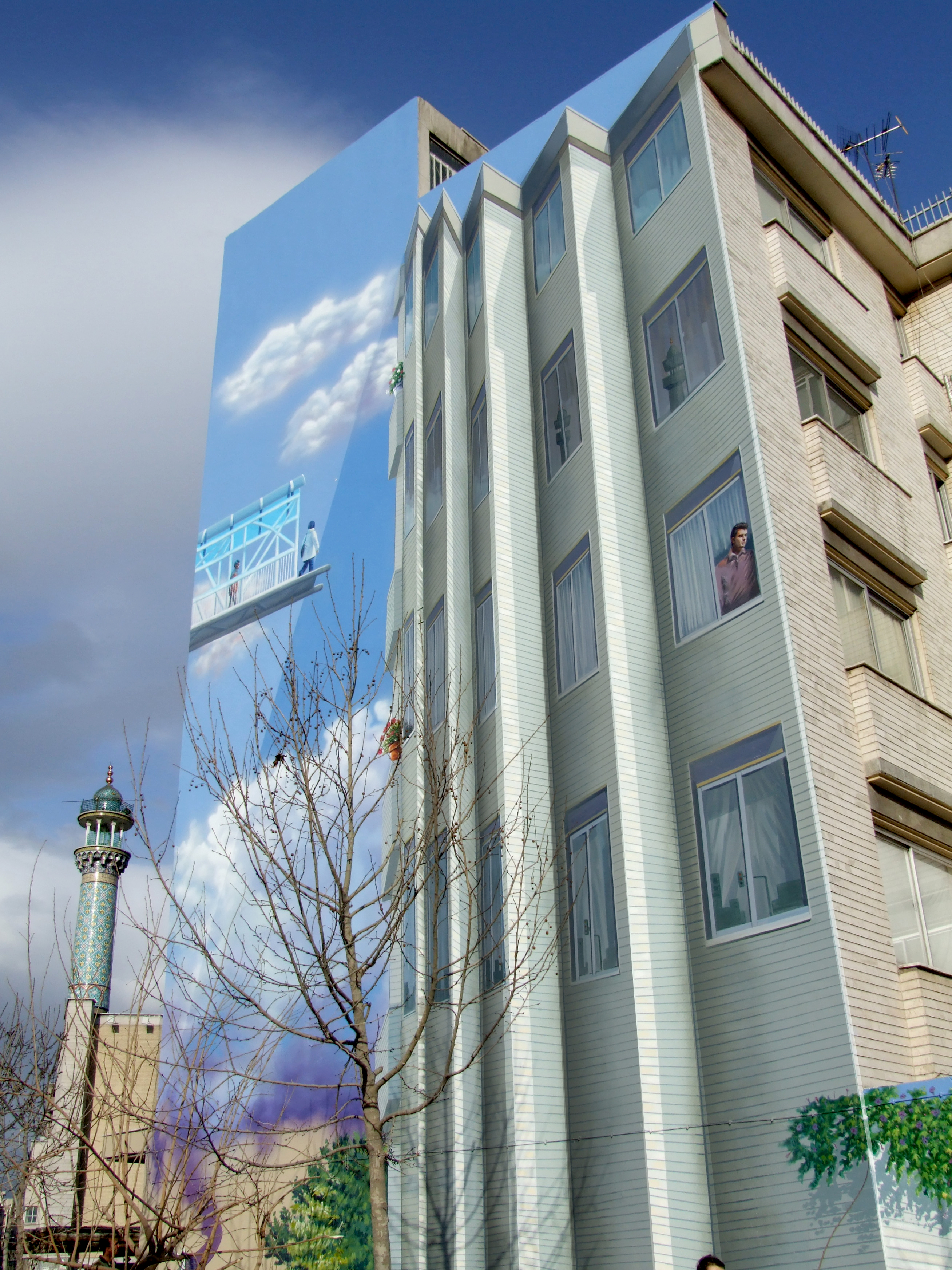 Yes. In fact most of my large-scale work is financed by the municipality. Some 8 years ago, the municipality set up a committee to help promote mural art in Tehran. The city is an architectural mishmash with buildings often having only one facade and the other three just left blank and grey. This doesn’t make for a beautiful city but it is a great environment for mural work. I think the municipality really felt the need to bring some cohesion or at least colour to the often confused and smog-smeared architectural face of the city.