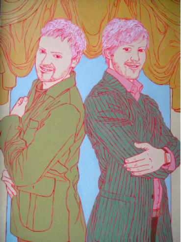 In 2011, she painted an untitled series of portraits. They are small. In fact, the size of a family picture you may frame and place on the bed-side table. The usual birthday parties of a loved one, couples, dear friends. Except considering the context these portraits are painted in, they are all but conventional. In this series, Romisa with a strong dose of irony, questions tradition versus reality.